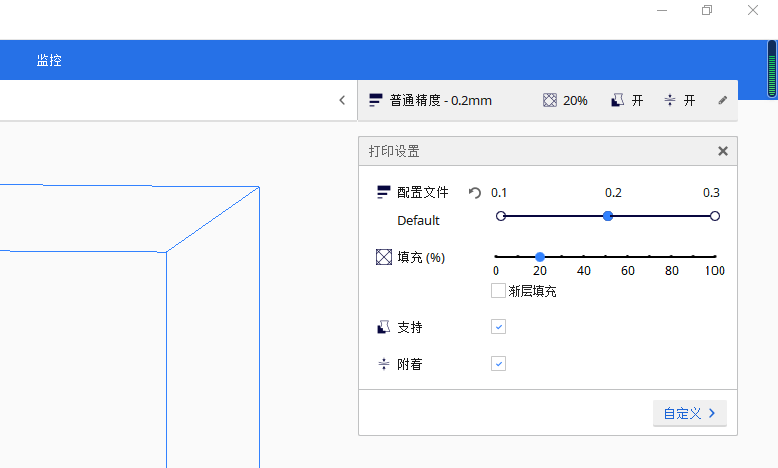 基于Marlin代碼重做了切片計(jì)算邏輯,降低切片的失誤可能性,提高了模型打印的表現(xiàn)。取消了支撐頂部隨模型支撐接觸面形狀進(jìn)行變化,提高支撐易拆取性,同時(shí)也需要提高密度來(lái)獲得好的接觸面效果。