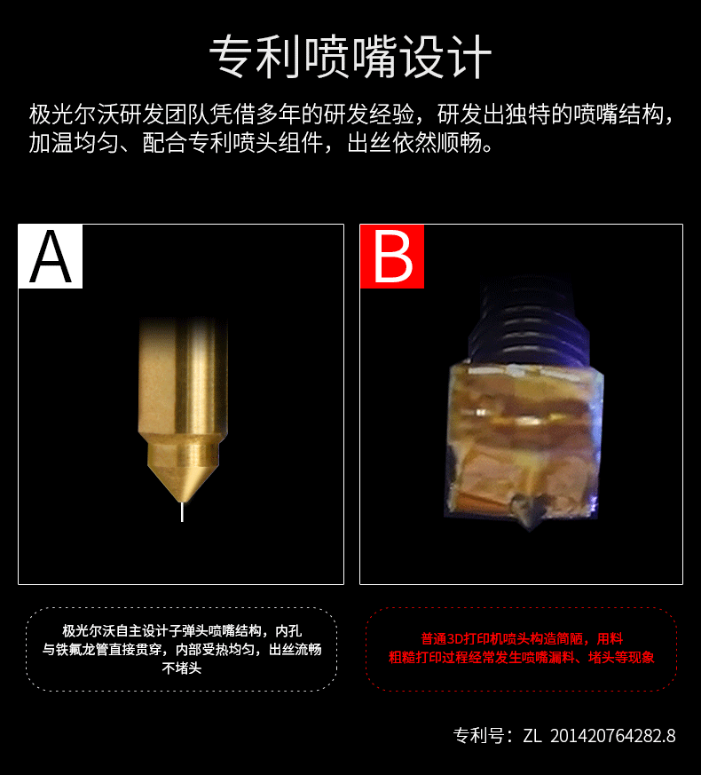 極光爾沃A8S作為一款定位于萬元價(jià)位的工業(yè)機(jī),在各項(xiàng)性能上都做到了極致,它既能滿足手板制作的需求,也在成本上做得了極致控制。與我們的科技機(jī)型A 7不同,A8S每一個(gè)零件都是為3D打印效果服務(wù),設(shè)計(jì)之初,我們希望首先能夠讓大多數(shù)需要的人享受到3D打印帶來的便利,解決有無,再讓它們變得“更懂人心”。這就是A8S,一款純粹的具有強(qiáng)大實(shí)力的3D打印機(jī)。