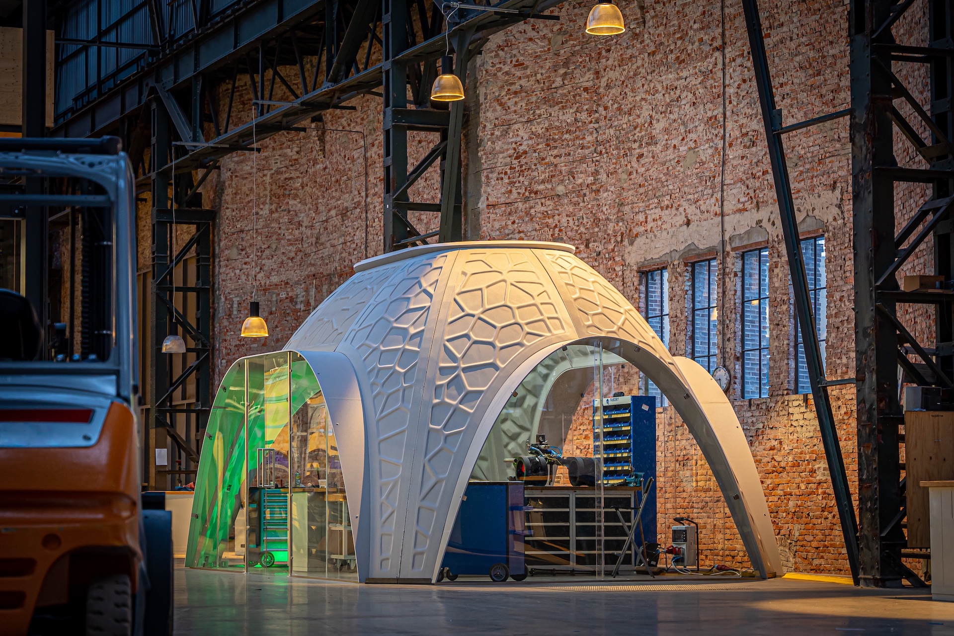 △為鹿特丹創(chuàng)客區(qū)設計的3D打印模塊化工作空間。圖片來自ARCHITECH公司。