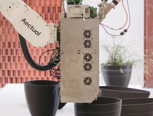 △Aectual公司的一臺3D打印機正在生產(chǎn)一個環(huán)保的花盆。圖片來自Aectual。