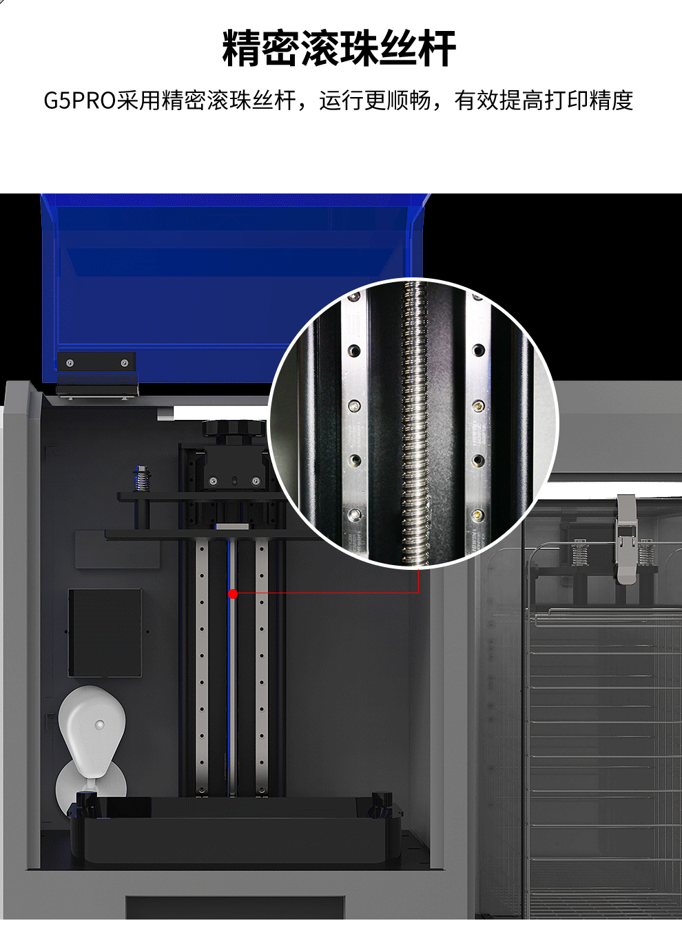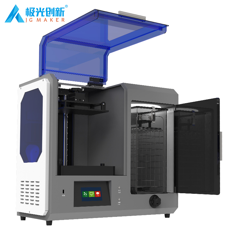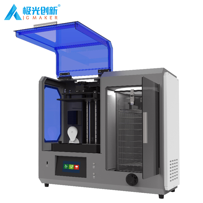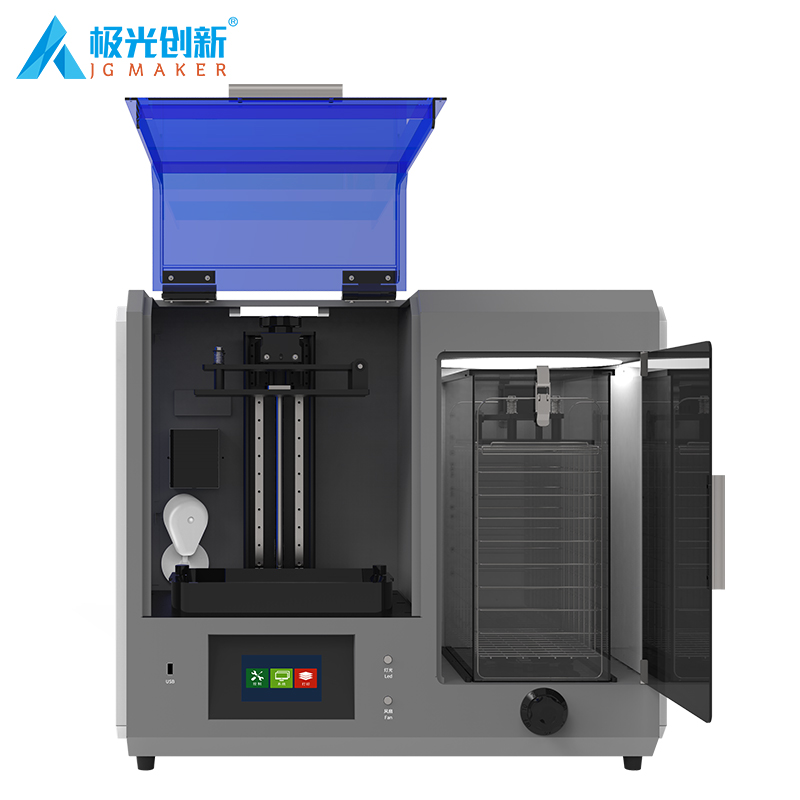 JG-L5 Pro 采用10.1寸6K透光固化屏,理論精度可高達0.045mm;增加打印、清洗、固化 三合一功能,內置攝像監控;對斷料檢測傳感器模塊做了升級,以及缺料會自動提示加料。