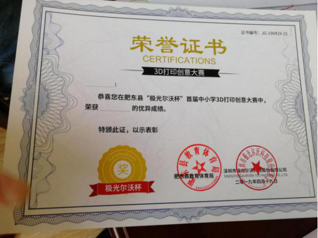 由深圳市極光爾沃科技股份有限公司和肥東縣教育體育局共同頒發的證書