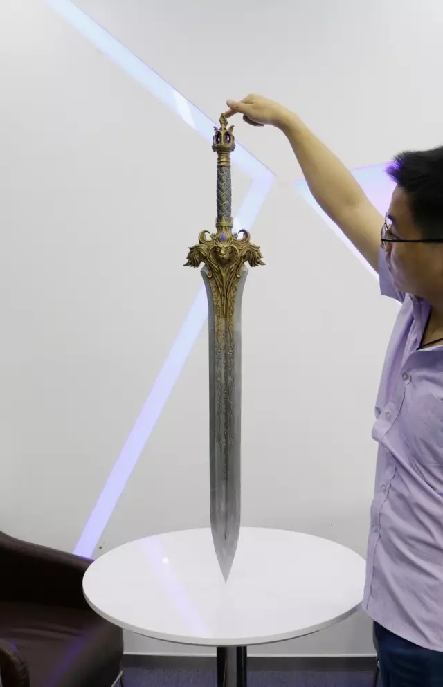 這把來自游戲魔獸世界經典道具雄獅之牙的仿制品,是按照原型1:1打印再經后期上色的,它不僅外觀看起來和游戲中的形象相同,而且細節處理得十分精致細膩,手感非常好,簡直是魔獸粉絲夢之道具。