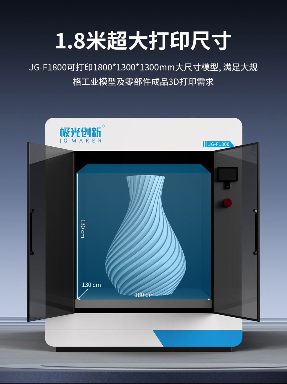 1.8米的超大打印尺寸,適配多種顆粒料耗材,具備更強大的塑造能力